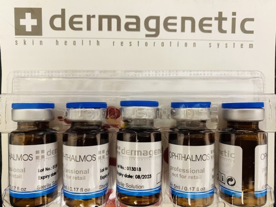 Realizohet me aplikimin e Ophtalmos të linjës Dermagenetic, që ka në përbërje Aqua / Ujë, Methylsilanol Mannuronate, Alcohol Denat., CynaraScolymus Leaf Extract, Propylene Glycol, Sodium Hyaluronate, Glycerin, Magnesium Ascorbyl Phosphate, Steareth-20, Coumarin, Troxerutin, Ginkgo Biloba Leaf Extract, Potassium Sorbate, N-Hydroxysuccinimide, Phenoxyethanol, Palmitoyl Tripeptide-1, Chrysin, Sorbic Acid, Palmitoyl Tetrapeptide-7, Acetyl Tetrapeptide-5, Caprylyl Glycol.
